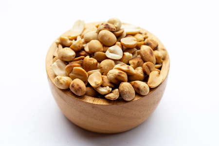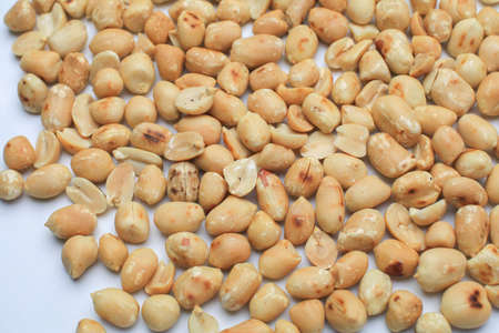 Roasted peanuts isolated on white background, clipping path, full depth of field. Selective focus