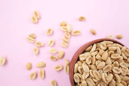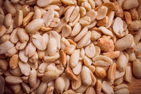 A background of salted roasted peanuts. Lots of peeled peanuts, top view.