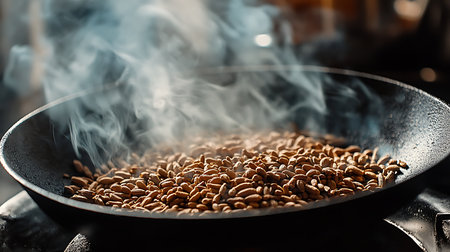 Roasting nuts creates a fragrant blend of flavors in a warm kitchen environment.