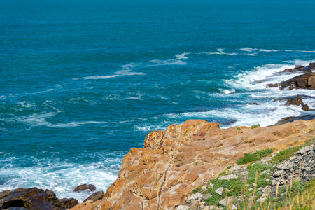 Cantabrian coast a sunny day with a strong swell and rocky coastline