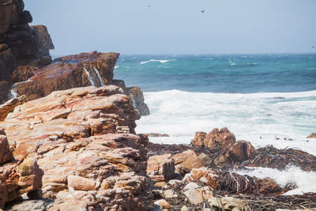Rocky foreshore and rough seas at Cape Of Good Hope, South Africa.