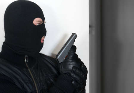 Burglar thief robbing house criminal activity robbery burglary mask crime scene stealing mugger security risk cctv camera catch illegal activity dangerous evil violence gun balaclava breaking