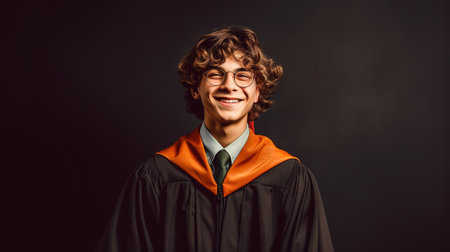 handsome judge in black gown and glasses looking at camera isolated on orange