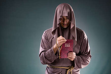 Close-up of priest holding Bible and reading prayers during ceremony in the church