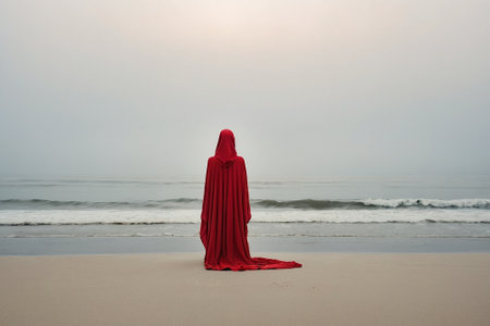 A vibrant scene showcasing a diverse group of women draped in colorful scarves, gathered in a misty landscape, reflecting cultural richness and unity.