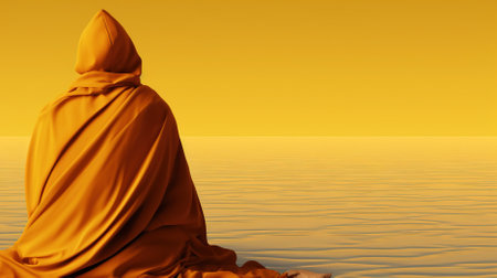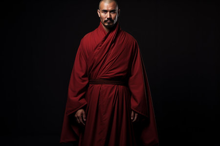 Serene Monk robe city walk. Tradition statue. Generate Ai
