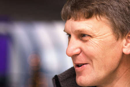Profile of a smiling mature man; selective focis