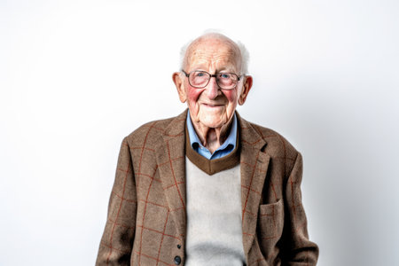 Elderly man with glasses on a white background in studio.