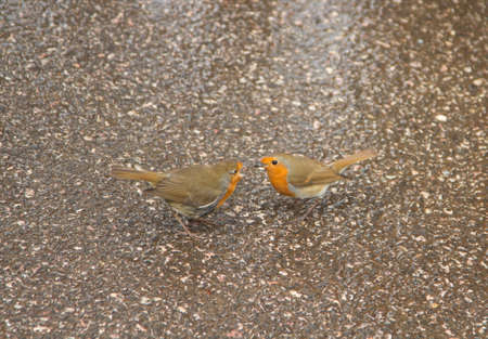 Two robins red breasts feeding each other