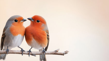 A Two birds sitting close together on branch, showcasing affection
