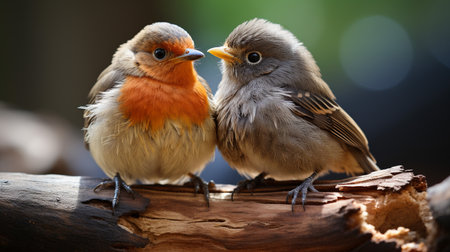 Beautiful background image of a wild robin (Erithacus rubecula) with stunning colors and standing on a branch, generative ai