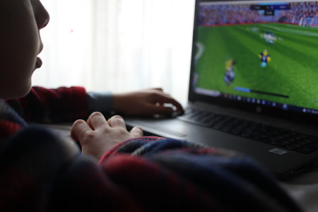 Selangor, Malaysia - September 20, 2019: Young kids playing online games on the gaming laptop. New modern generation kids leisure activity. Bad example and concept.