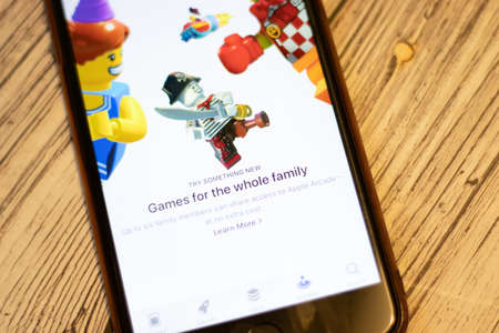 Galicia, Spain - August 21, 2020: hands with mobile phone with app and game logos