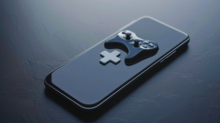 Dhaka, Bangladesh- 26 July 2025: A smartphone with a Roblox icon next to a controller and earbuds on a blue surface.