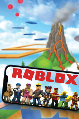 Roblox game app on the smartphone screen on white background. Top view. Rio de Janeiro, RJ, Brazil. May 2021. Vertical