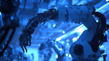In a high-tech factory, advanced robotic hands are ready for precise tasks, showing the importance of automation in industry.