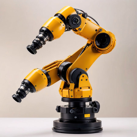 A detailed view of a modern robotic arm showcasing advanced design and functionality. This image highlights automation technology in industrial settings.