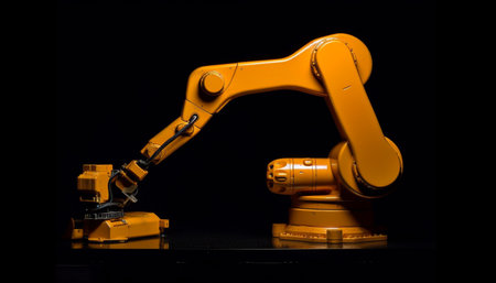 Industrial robot concept on black background, showcasing high-tech automation
