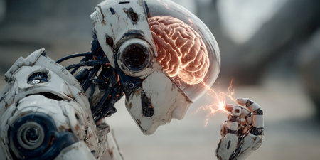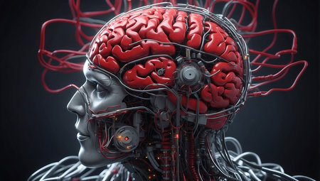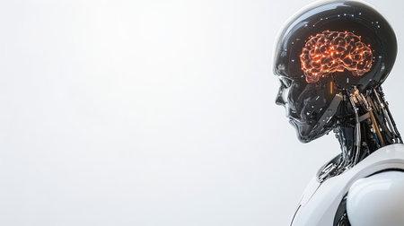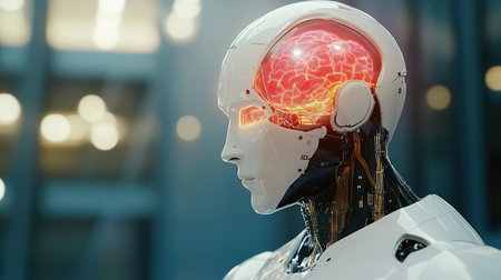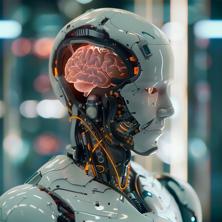 A Robot with visible brain and neural connections, futuristic technology concept