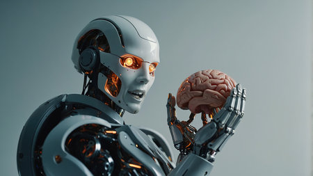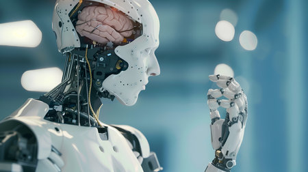 Modern robot with AI powered brain.