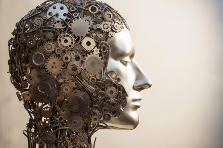 human head made from connected cogs and gears. Generative ai