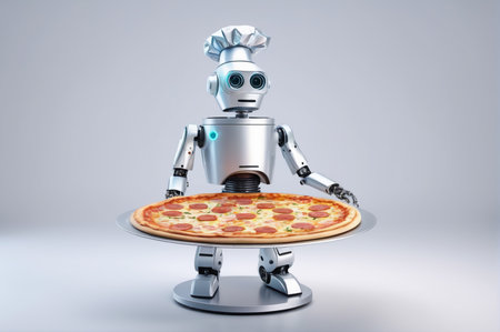 Robot Chef Serving Pepperoni Pizza Vector Illustration. Generative AI.