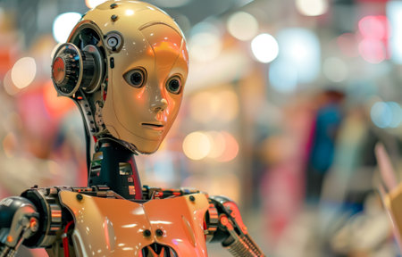 Futuristic humanoid robot with intricate mechanical components and sleek design, showcasing advancements in artificial intelligence and technology in modern environments