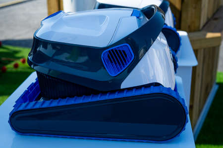 Cleaning robot for cleaning the bottom of swimming pools. Close-up