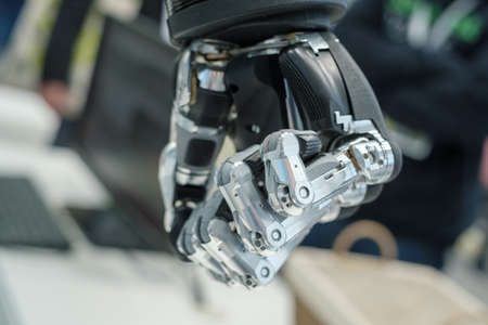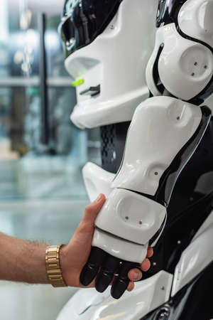 Close up of robot hand. Modern technology, artificial intelligence and machine learning concept