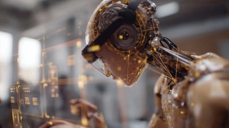 Robot works with data in a high-tech setting during daytime hours