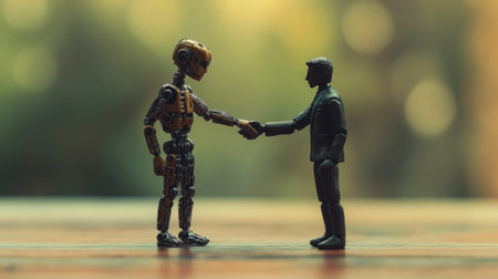 Businessman and Robot Shaking Hands, Symbolizing Collaboration for Success and Innovation