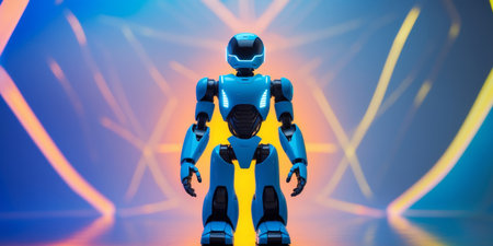 AI Generated. Colorful futuristic robot standing on gradient background