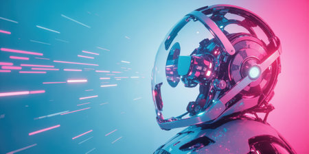 Futuristic robot with humanoid design on teal background