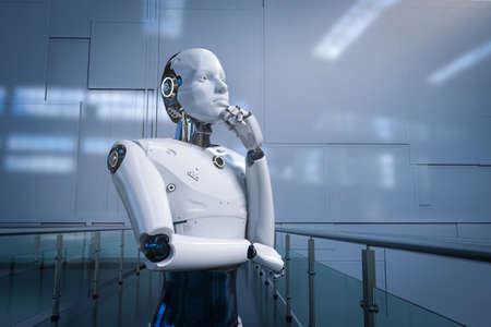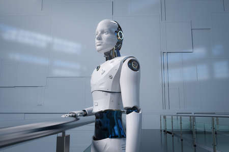 3d rendering artificial intelligence robot or cyborg looking forward