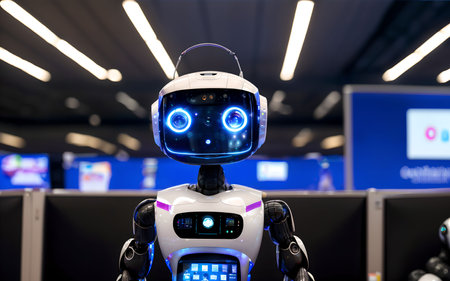 Advanced humanoid robot in a high-tech control room