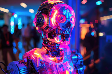 A glowing robot with a mesmerizing, hypnotic shimmer that captivates onlookers AI generated