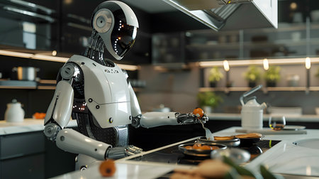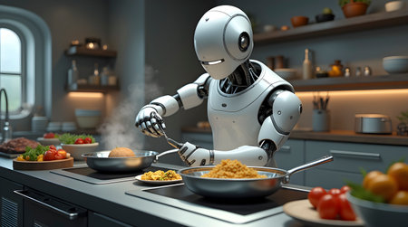 Robotic Chef Cooking in Modern Kitchen