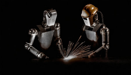 Precision-engineered robotic fingers gently intertwine, creating a symbolic symbol of harmony between technology and human emotion.