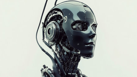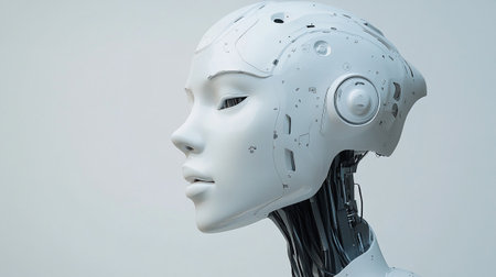 portraits of a female robot on a neutral background concept of robotics and artificial intelligence