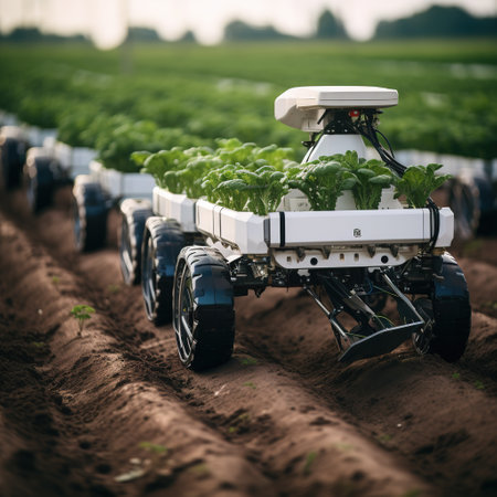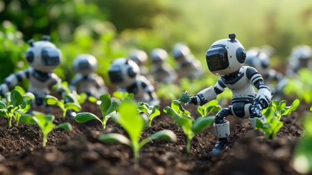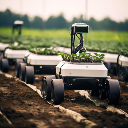 Advanced robotic systems are assisting farmers in planting and harvesting crops, showcasing the integration of technology and agriculture for improved efficiency and productivity. Generated AI