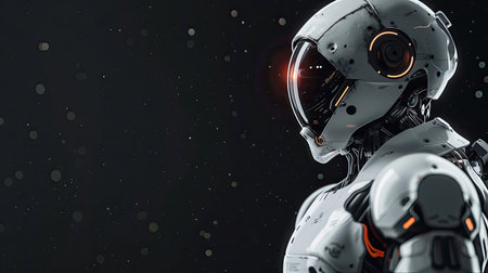 Futuristic robot concept on black backdrop, highlighting high-tech industry
