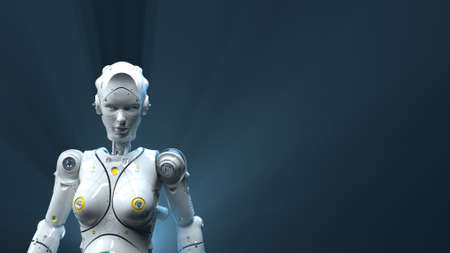 Robot Android Cyborg Woman Humanoid - isolated in black background -realistic 3D rendering