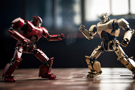 Two fighting robots. Epic battle between two mechanical characters. Generative AI illustration
