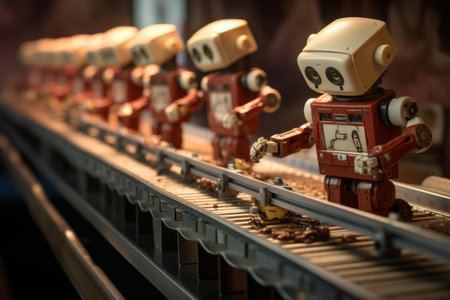 Efficient Robotic automation conveyor belt. Mechanical automated industrial system equipment. Generate ai