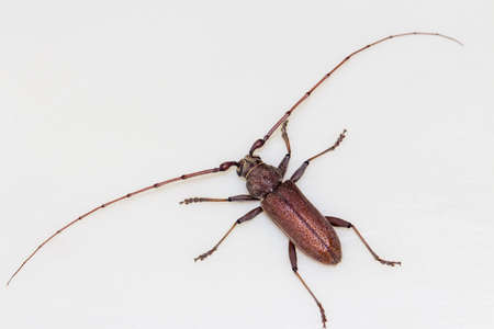 Beetle with big mustache on white background .