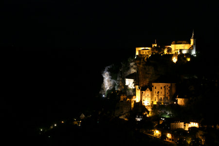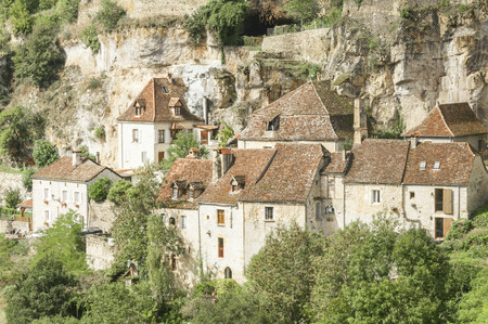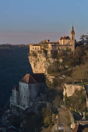 Medieval village of Rocamadour on its spur. In the middle ages, pilgrims come here and ascend 216 steps on their knees to go to the shrine of Our Lady at the top of the cliff.