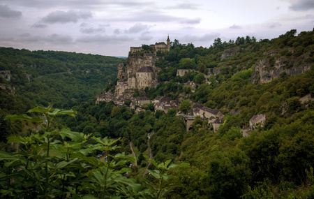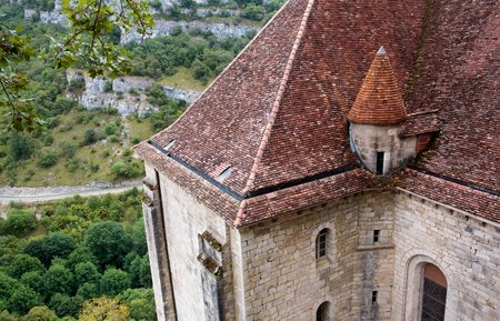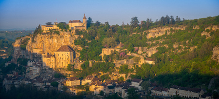 Overlooking the famous religious landmarks of the clifftop village of Rocamadour, France