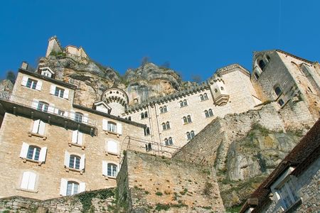 Rocamadour, a predominantly tourist city located in south-central France, built on the slopes of a mountain that was originally a Benedictine monastery.