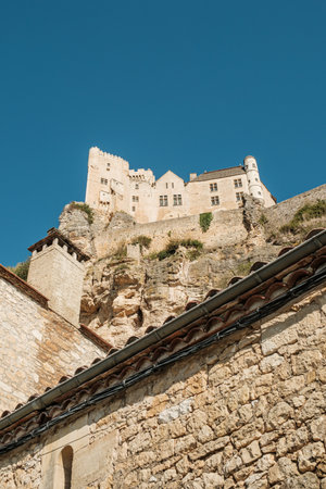 Beynac-et-Cazenac, Nouvelle-Aquitaine, France - 11th October 2023: Built in the 12th century and conquered by Richard the Lionheart during the 100 years war, Chateau de Beynac towers over the village of Beynac-et-Cazenac in France