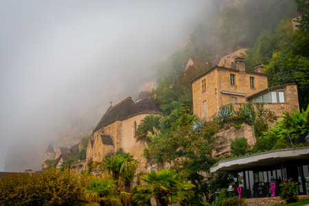 Fog over La Roque-Gageac, covered. The Dordogne. France. October 2021